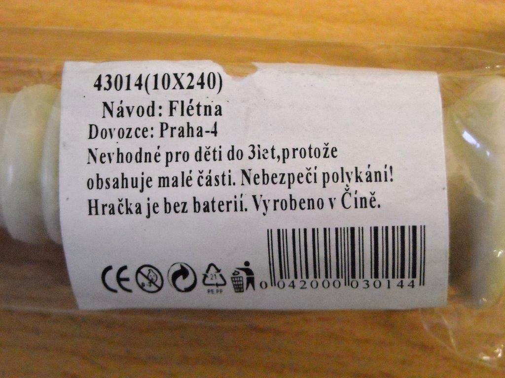 (Prague, May 30, 2013) Toys belong among the products that are monitored by the Czech Trade Inspection Authority during the whole year. The officers especially focus on seeking risky toys that could damage the health of the users, i.e. children, due to their characteristics or in the consequence of insufficient seller’s information. A plastic flute originating in China is one of the risky products detected in the Czech market. “Selling of this product was banned because both the inner and the outer part of the removable mouth-piece came loose during the pull test, thus there is a risk of choking or inhaling the small parts,” the CTIA Director General Vladimír Velčovský explained.