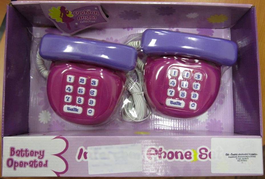 (Praha, 6. září 2013) Česká obchodní inspekce zjistila, že na trhu ČR je v nabídce pro spotřebitele výrobek – dětský telefon Intercom Phone Set na baterie, který představuje vážné riziko zejména pro děti. „Při hraní s tímto telefonem hrozí dítěti poškození sluchu, neboť bylo zjištěno, že emisní hladina akustického tlaku stanovená normou byla překročena o 15 %. Akustický tlak nesmí přesáhnout 90 dB, což výrobce nedodržel,“ upřesnil rizika při běžném používání výrobku Vladimír Velčovský, ústřední ředitel ČOI. Na jeho prodej inspektoři vydali zákaz a bude nahlášen do systému RAPEX.